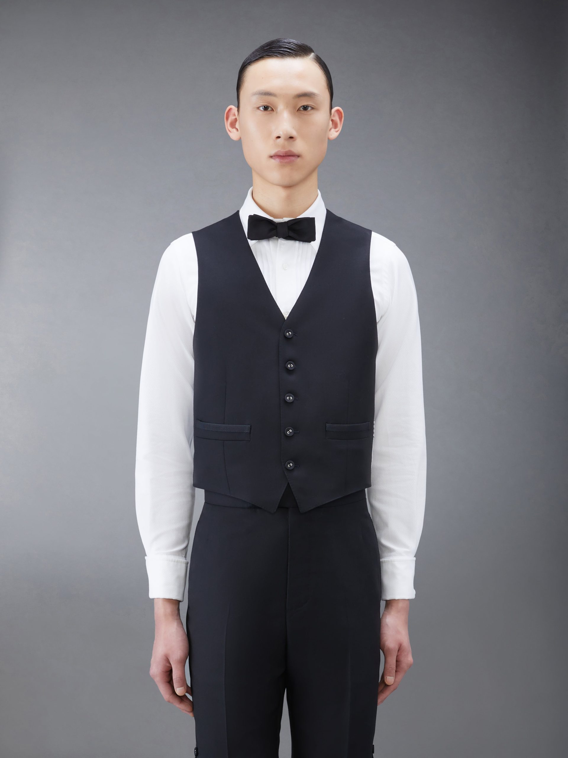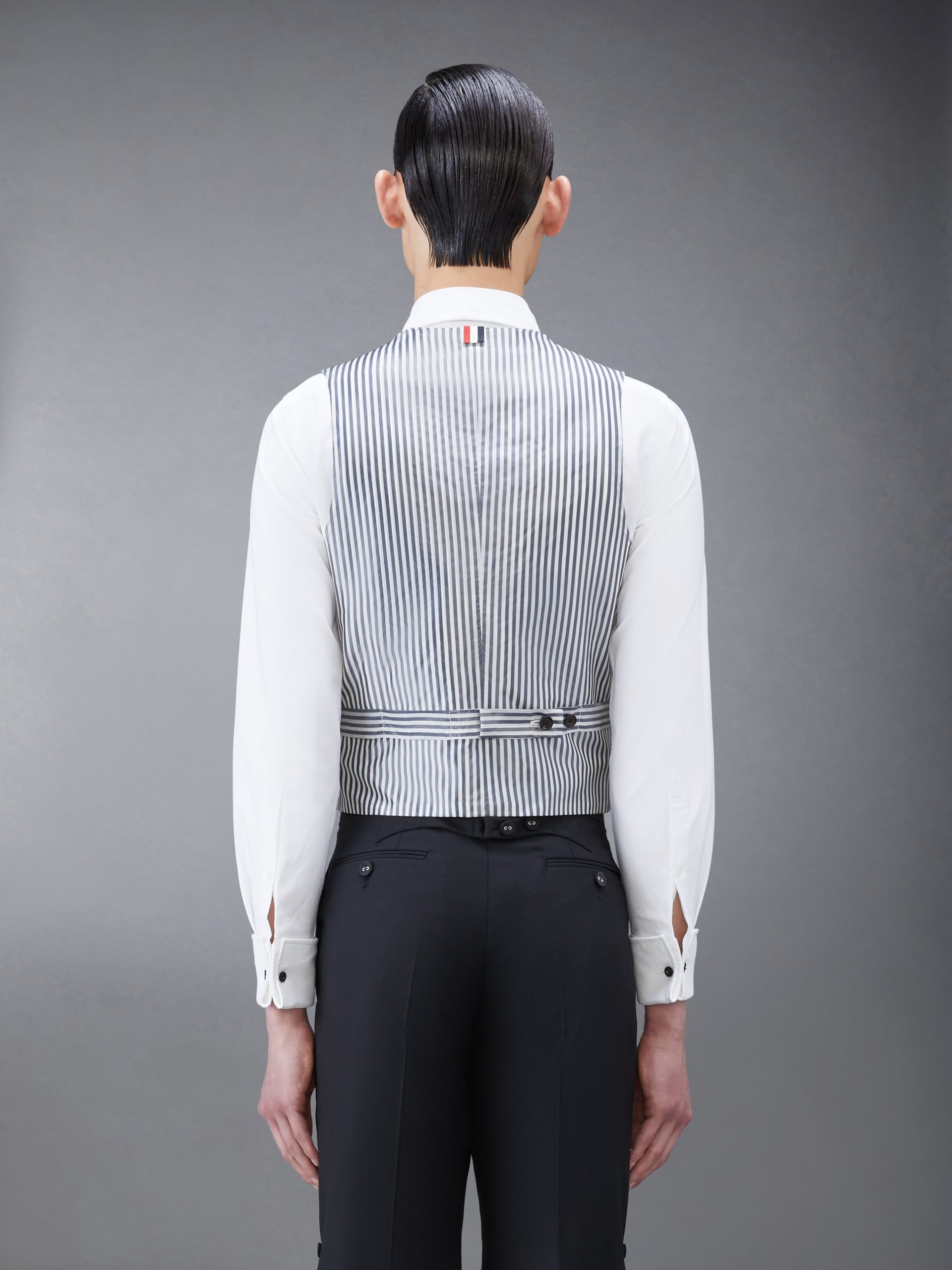 Sharp and refined. this Classic Twill Tipping Vest was inspired by East Coast preppy icons but reimagined with Thom Browne’s signature proportions and meticulous craftsmanship. Fit 1 – Classic