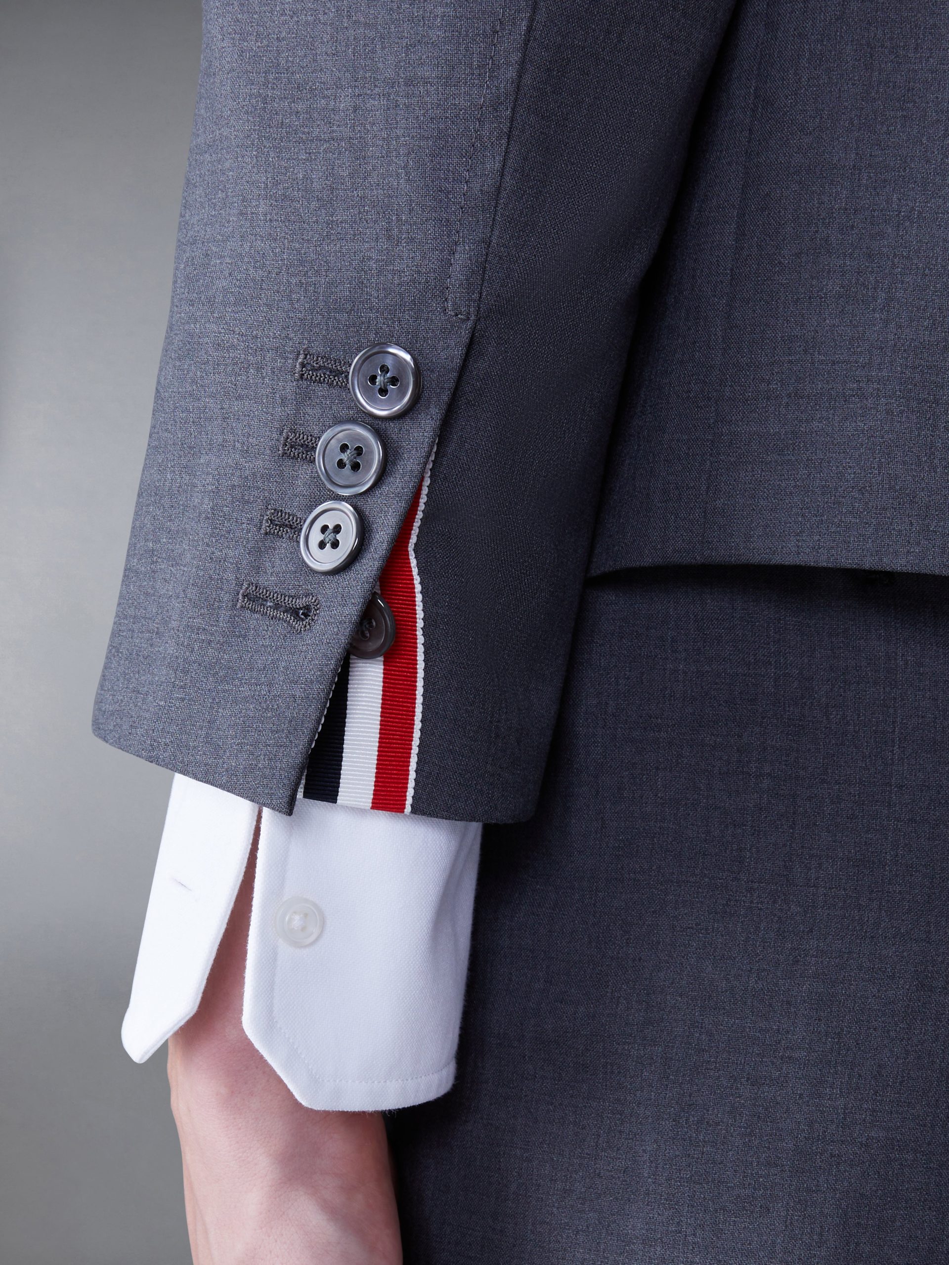 Buttoned cuffs with signature striped grosgrain trim